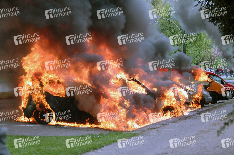 Politik, Tag der Arbeit, 1. Mai, Chaoten, Linke, Autonome, Demonstranten, Demonstration, Autos, brennende Autos, Feuer, Brand