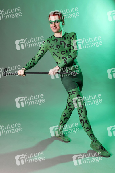 Cosplay, Cosplayer, Bodypainting, Body-Painting, Make-up, Maskenbildnerei, Körperkunst, Körperfarben, Projekt Farbkörper, Farbe, Bemalung, Kunst, Malerei, Comic, DC Comics, Comicfigur, Verbrecher, Psychopath, Batman-Gegner, Edward Nygma, Fragezeichen, Rätzel, body painting, body art, project color body, colors, colours, villain, comic character, criminal, psychopath, Batman opponent, question mark, riddle