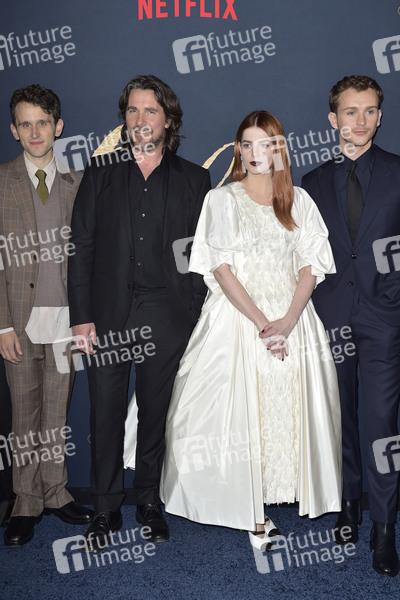Harry Melling, Christian Bale, Lucy Boynton und Harry Lawteybei der Premiere des Kinofilms 'The Pale Blue Eye / Der denkwürdige Fall des Mr Poe' im DGA Theater Complex. Los Angeles, 14.12.2022
