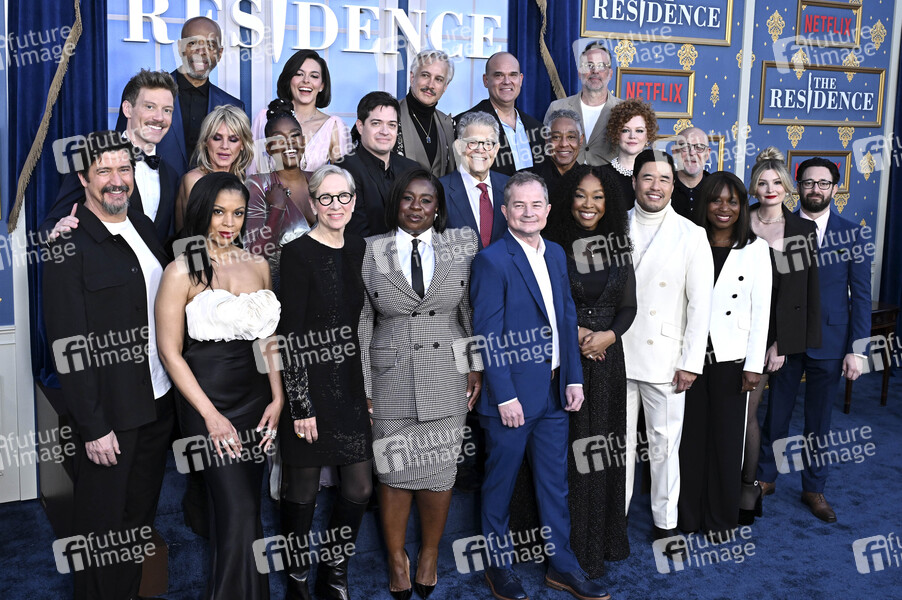 Ken Marino, Susan Kelechi Watson, Barrett Foa, Eliza Coupe, Betsy Beers, Al Mitchell, Edwina Findley, Uzo Aduba, Julieth Restrepo, Dan Perrault, Paul William Davies, Bronson Pinchot, Al Franken, Shonda Rhimes, Mel Rodriguez, Giancarlo Esposito, Randall Park, Jason Lee, Mary Wiseman, Nne Ebong, Peter Friedlander, Emily Levitan und Andrew McQuinn bei der Weltpremiere der Netflix Miniserie 'The Residence' in Egyptian Theater. Los Angeles, 19.03.2025