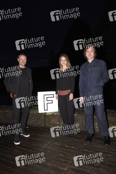 Devid Striesow, Luise Heyer und Lars Eidinger bei der Premiere des Kinofilms 'Nahschuss' auf dem 38. Filmfest München 2021 im Open-Air-Kino Kino, Mond & Sterne im Westpark. München, 04.07.2021
