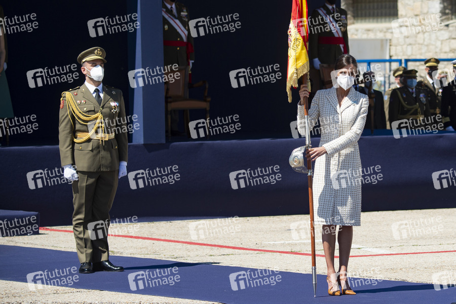 Königin Letizia von Spanien bei der Zeremonie der Übergabe der Nationalflagge an die ACAVIET (Luftfahrtakademie der Armee) in der Helipuerto Base Coronel Mate. Colmenar Viejo, 07.05.2021