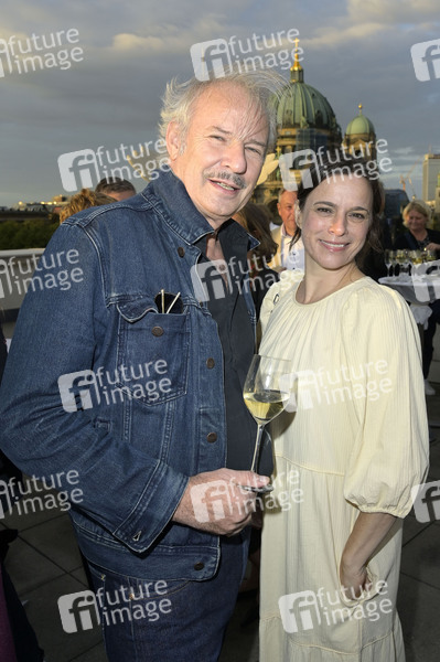 Leander Haußmann und Annika Kuhl beim Eröffnungsempfang der UFA Filmnächte 2024 auf der Dachterrasse der Bertelsmann Repräsentanz. Berlin, 21.08.2024