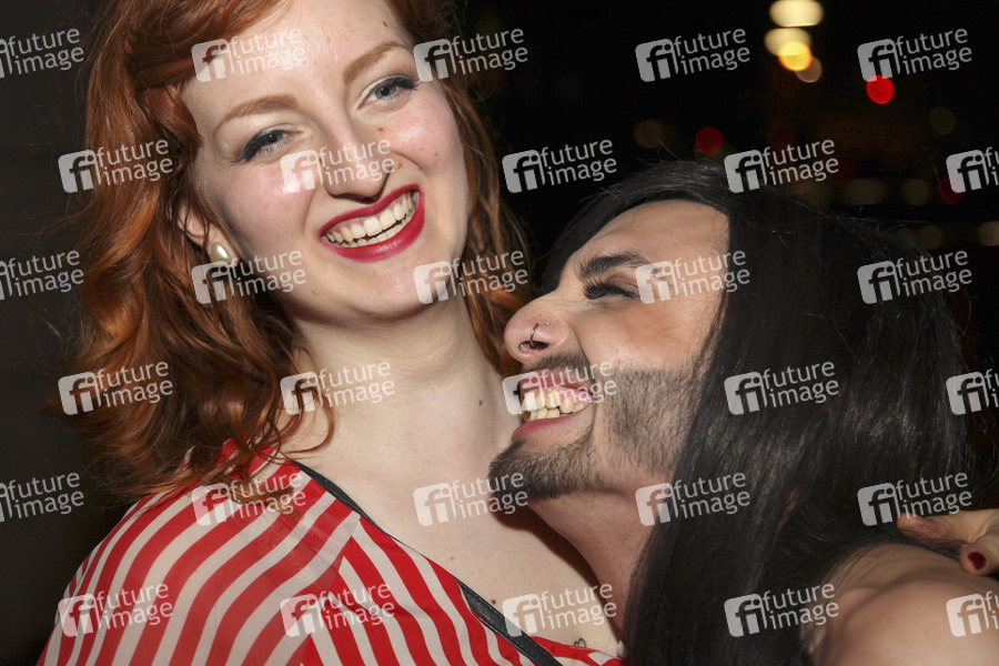 Mitzi May und Conchita Wurst in der Pause der Burlesque Show 'Kitty Revue' in der Arena Bar. Wien, 11.06.2011