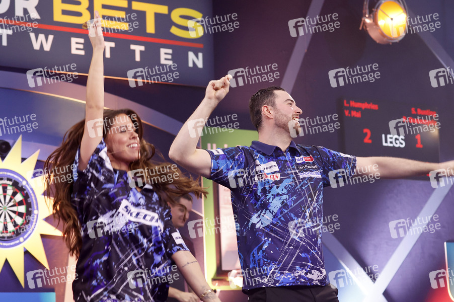 Vanessa Mai und Luke Humphries bei der Promi-Darts-WM 2025 im Maritim Hotel. Düsseldorf, 05.01.2025