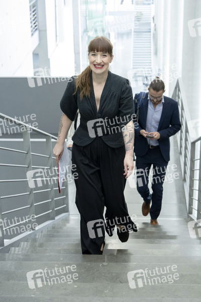 Heidi Reichinnek beim Pressestatement der Partei Die Linke im Reichstagsgebäude. Berlin, 04.07.2025
