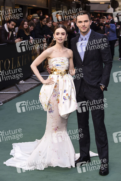 Lilly Collins und Nicholas Hoult bei der Premiere des Kinofilms 'Tolkien' im Curzon Mayfair. London, 29.04.2019