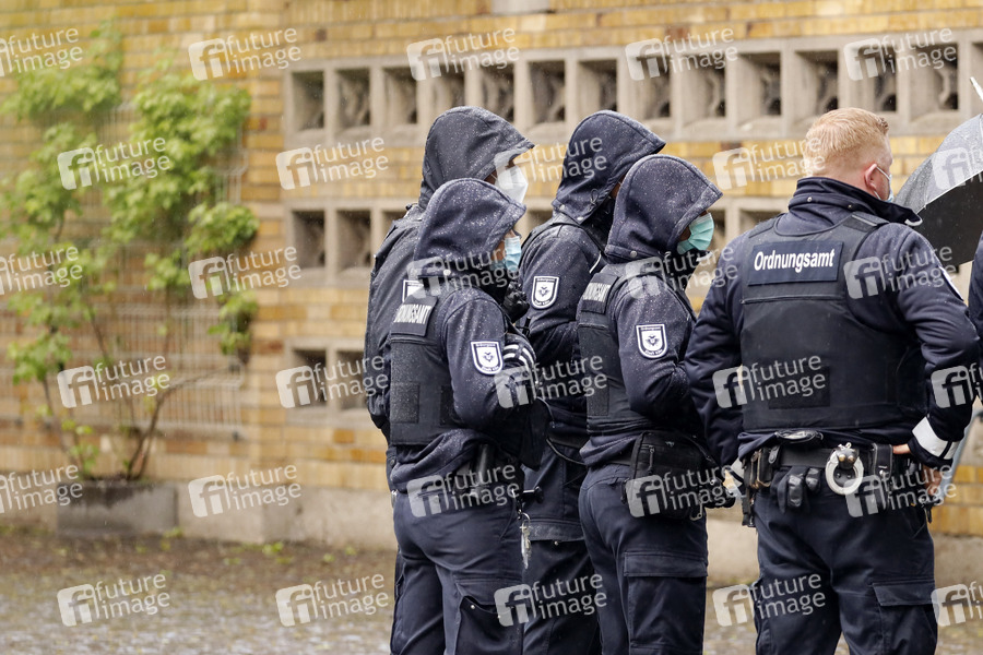 Ordnungsamt-Mitarbeiter bei der Trauerfeier und Beerdigung von Willi Herren auf dem Melaten Friedhof. Köln, 05.05.2021