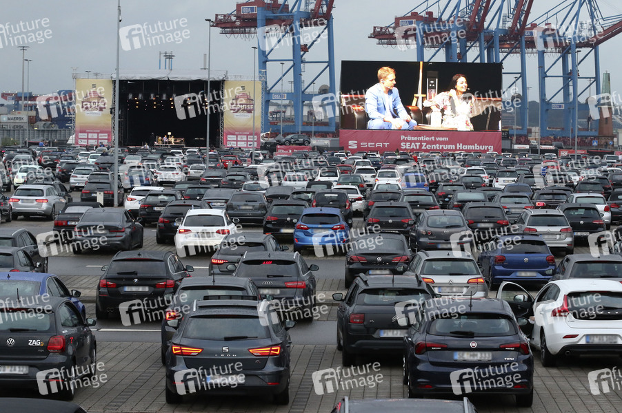 Moderator, Komiker, Entertainer, Prominenz, Celebrity, Celebrities, Auftritt, Bühne, Stage, live, Unterhaltung, Entertainment, Kultur, Corona, Sars-CoV-2, Covid-19, Coronavirus, Coronakrise, Corona-Krise, Corona-Pandemie, Coronamaßnahmen, Corona-Schutz, Kontaktverbot, Mindestabstand, Social Distancing, Abstand, Abstandhalten, Abstandsregel, Auto, Autokonzertreihe, Autokinokonzert, Autokino-Konzert