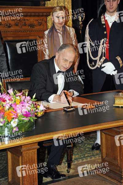 Mircea Geoana beim Eintrag ins Goldene Buch beim Matthiae Mahl im Rathaus Hamburg. Hamburg, 28.02.2020