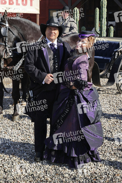 Francis Fulton-Smith und Sonja Kirchberger bei der Präsentation der Gaststars von 'Halbblut' der Karl-May-Festpiele 2025 im Indian Village. Bad Segeberg, 07.03.2025