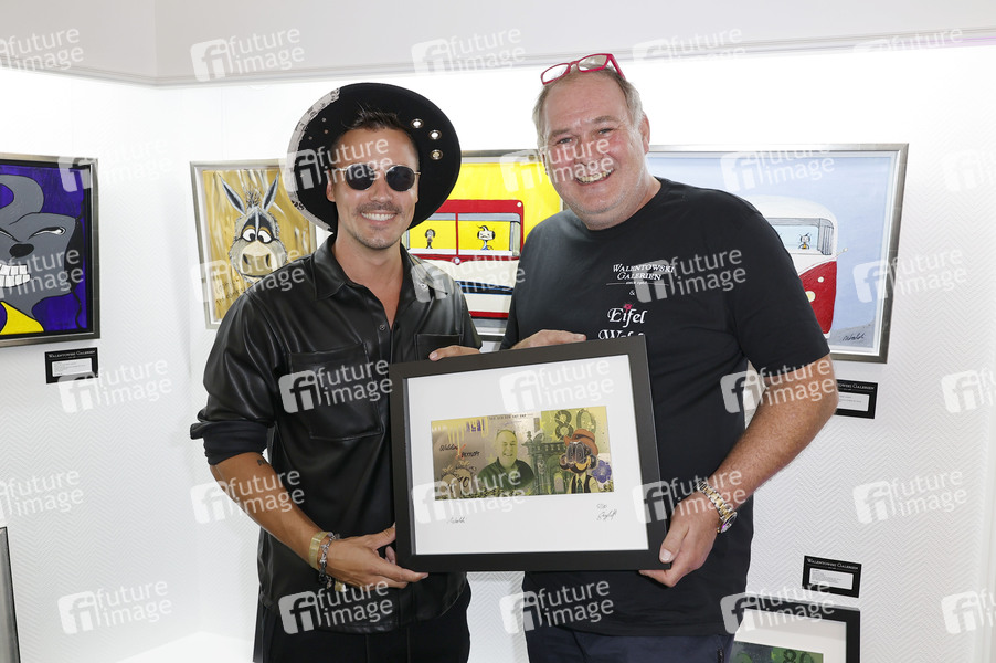 Steffen 'Skyyloft' Rosenberger und Walter '80 Euro Waldi' Lehnertz bei der VIP-Eröffnung der Otto Waalkes Ausstellung 2024 in der Galerie Am Hellweg. Werl, 31.08.2024