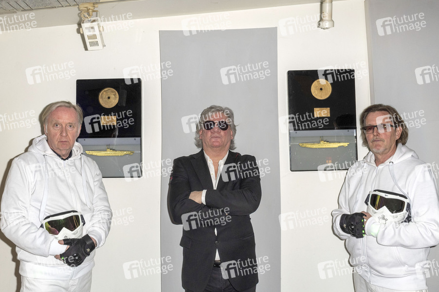 Claude-Oliver Rudolph mit Hayo Lewerentz und Ingo Hauss von U 96 beim Fototermin zum Fantasy-Musical 'Jules Verne, 20.000 Meilen unter dem Meer' im Tonstudio von U96. Hamburg, 21.04.2021