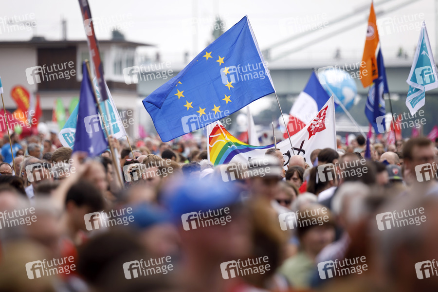 EU-Flaggen bei der Demonstration 'Ein Europa für alle - Deine Stimme gegen den Nationalismus' in der Deutzer Werft. Köln, 19.05.2019