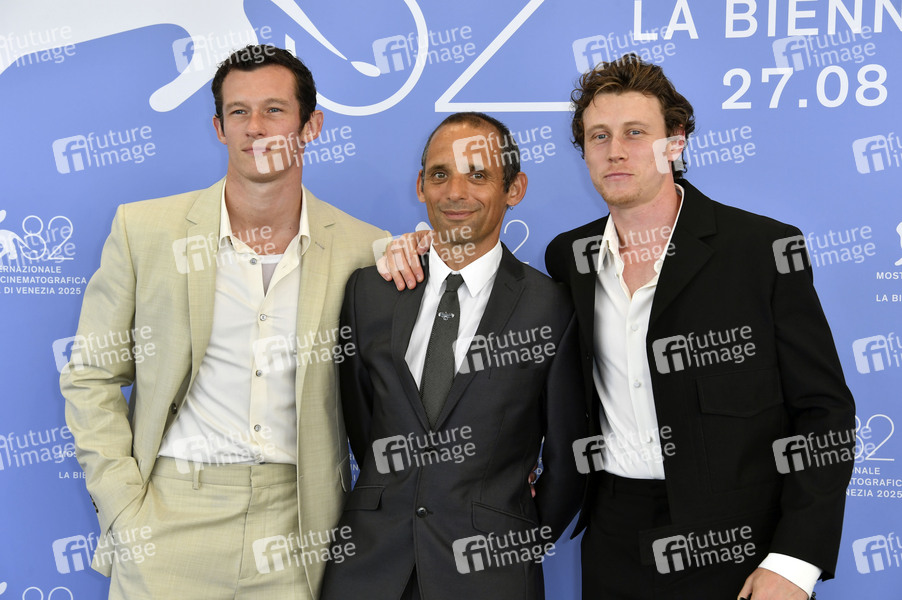 Cullum Turner, Mark Jenkin und George MacKay beim Photocall zum Kinofilm 'Rose of Nevada' auf der Biennale di Venezia 2025 / 82. Internationale Filmfestspiele von Venedig im Palazzo del Casino. Venedig, 30.06.2025