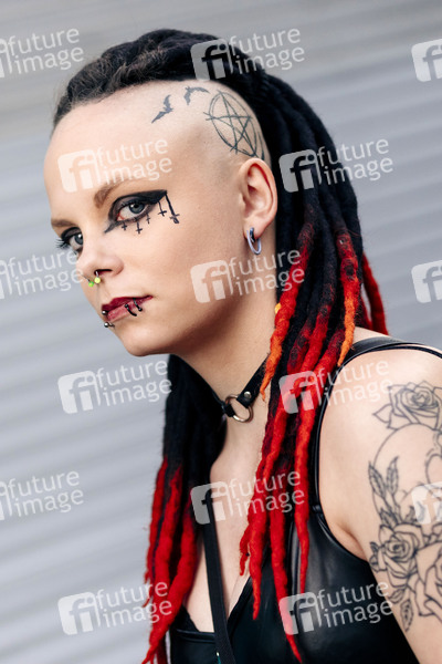 Festivalbesucherin auf dem XV. Amphi-Festival 2019 im Tanzbrunnen. Köln, 20.07.2019