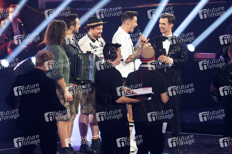 Die Draufgänger und Florian Silbereisen in der TV-Show 'Silvester-Schlagerbooom 2025 live - Die Wunderlichtershow!' im BMW Park. München, 31.12.2024