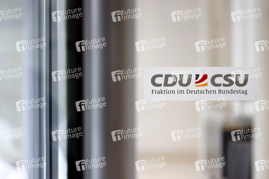 Hinweisschild auf die CDU/CSU-Fraktion im Deutschen Bundestag. (Themenbild, Symbolbild) Berlin, 12.02.2021