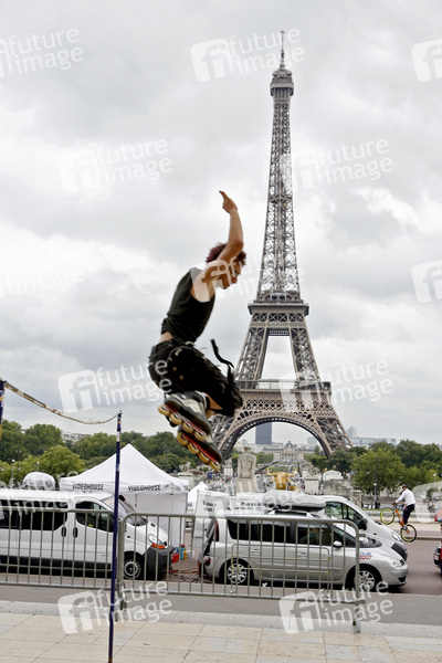 Inline-Skater vor Eiffelturm / Tour Eiffel