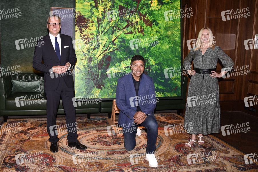 Holger Schroth, Giovane Elber und Simone von Anhalt beim Fototermin zur Vier Jahreszeiten Kempinski Charity Kunst Auktion im Hotel Vier Jahreszeiten Kempinski. München, 11.06.2021