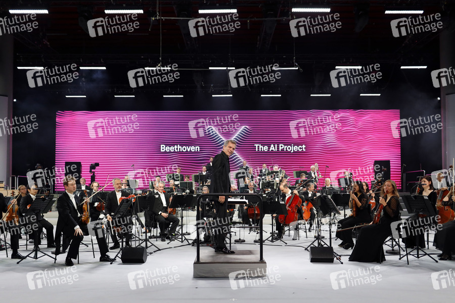 Dirk Kaftan und das Beethoven Orchester Bonn bei der Generalprobe des Beethoven Orchester Bonn für die von einer KI vollendete 10. Sinfonie Beethovens vor der abendlichen Uraufführung im Telekom Forum. Bonn, 09.10.2021