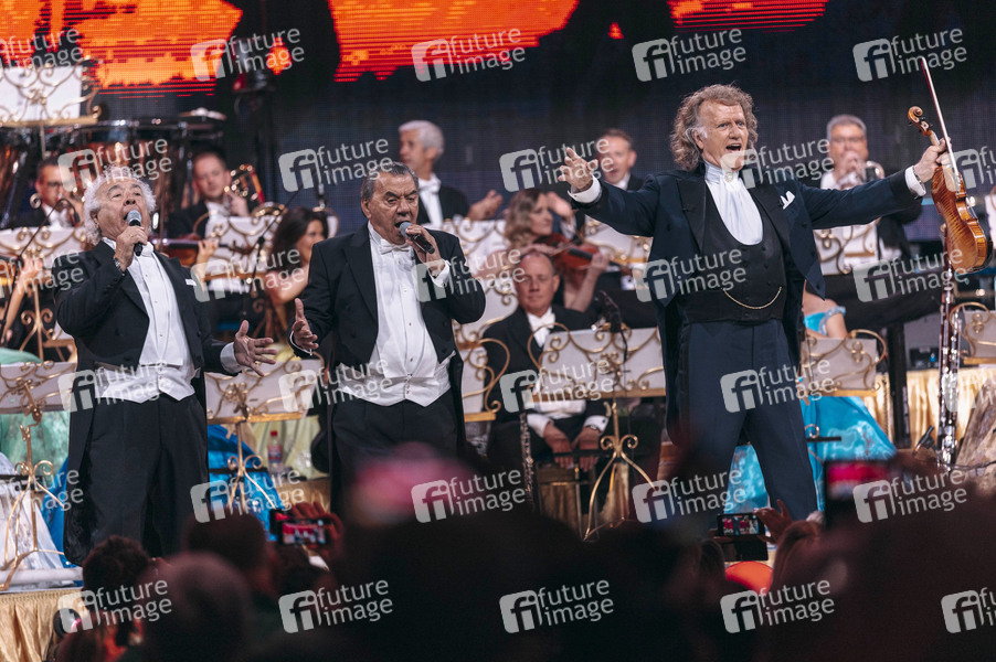 Antonio Romero Monge und Rafael Ruiz Perdigones von Los del Rio und Andre Rieu mit seinem 60-köpfigen Johann Strauss Orchester live bei einem Konzert in der Messehalle. Erfurt, 16.05.2025