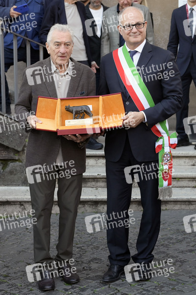 Robert de Niro und Roberto Gualtieri nach der Verleihung des Lupa Capitolina auf dem Kapitolsplatz. Rom, 06.11.2025