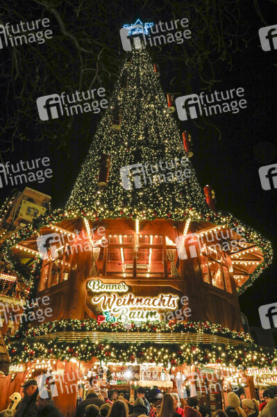 Bonner Weihnachtsbaum - Jedes Jahr verwandelt sich die Bonner Innenstadt in eine stimmungsvolle Budenstadt, dem Bonner Weihnachtsmarkt. Kunsthandwerk, Fahrgeschäfte und viele kulinarische Köstlichkeiten machen den Besuch bei gemütlicher Atmosphäre zu einem kleinen Erlebnis. Energiesparmaßnahmen finden sich in der LED-Technik, im begrenzten Zeitraum der Beleuchtungen nur zwischen 16 und 22:00 Uhr sowie beim Verzicht auf Heizpilze. Bonn, 03.12.2022