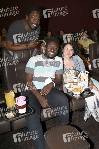 Noom Diawara, Elie Kayembe und Marie-Catherine Rausch bei der Premiere des Kinofilms 'Monsieur Claude und sein großes Fest / Qu'est-ce qu'on a tous fait au bon Dieu?' im Gloria Filmpalast. München, 18.07.2022