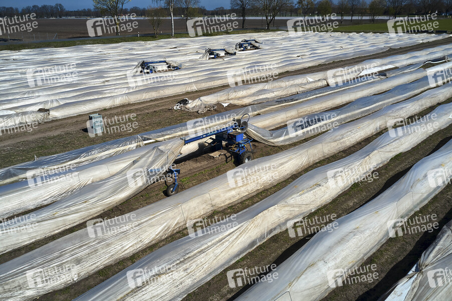 Spargelfeld, Spargel, Spargelfelder, Spargelernte, Gemüse, Erntehelfer, Feld, Luftbild, Luftaufnahme, Engels SpargelSpinne, Spargel Spinne, Spargelmashine