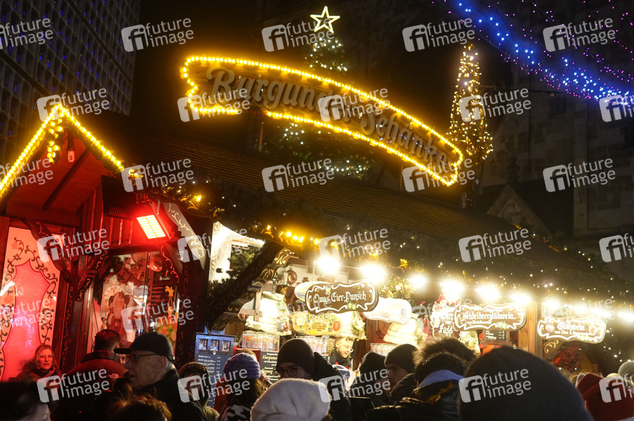 Burgunder Schänke auf dem City-Weihnachtsmarkt an der Gedächtniskirche auf dem Breitscheidplatz. Berlin, 16.12.2024