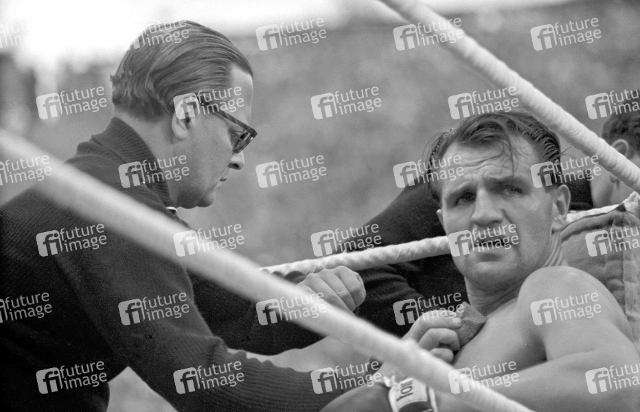 Europameisterschaftskampf im Box-Schwergewicht Jack Gardner (England) gegen Hein ten Hoff (Deutschland) in der Berliner Waldbühne