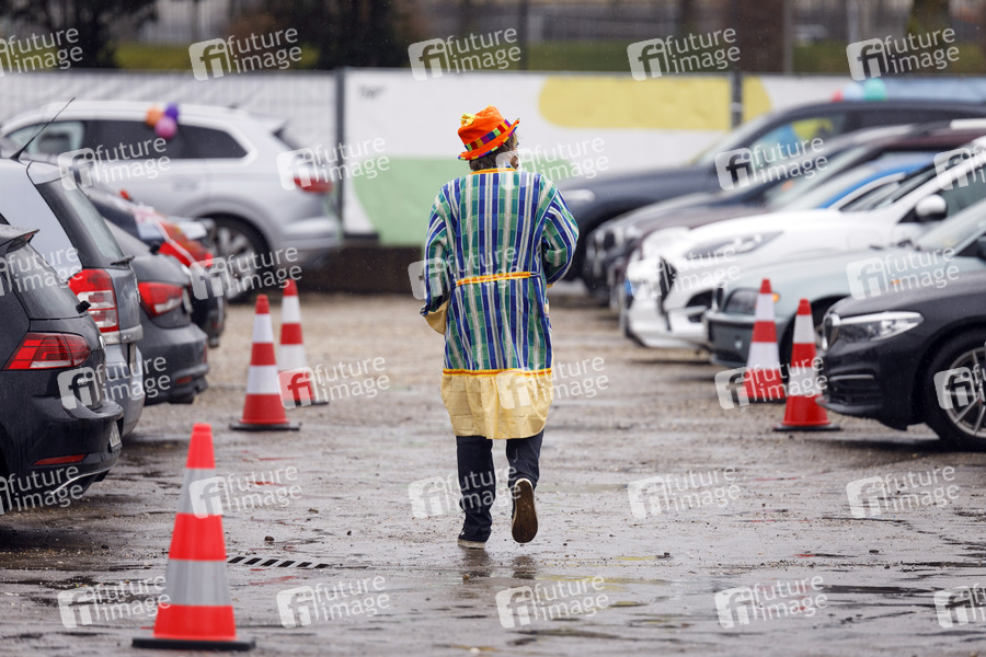 Impression beim Autokonzert 'Carnevalssitzung #1' von Bonnlive am Südstadion. Wegen der anhaltenden Coronakrise sind Karnevalsveranstaltungen in diesem Jahr weitgehend abgesagt, der Kölner Rosenmontagszug findet lediglich virtuell statt, Konzerte unterliegen strengen Beschränkungen. Köln, 06.02.2021