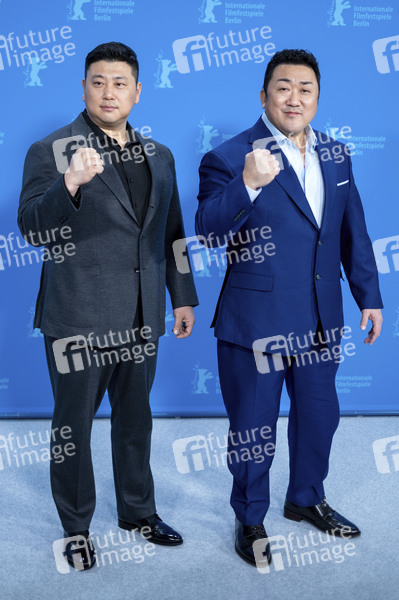 Don Lee / Ma Dong-seok und Heo Myeong-haeng beim Photocall zum Kinofilm 'Beom-Joe-do-si 4 / Beomjoedosi4 / The Roundup: Punishment' auf der Berlinale 2024 / 74. Internationale Filmfestspiele Berlin im Hotel Grand Hyatt. Berlin, 23.02.2024