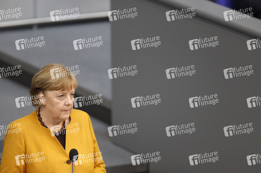 Angela Merkel in der 217. Sitzung des Deutschen Bundestages im Reichstagsgebäude. Berlin, 24.03.2021