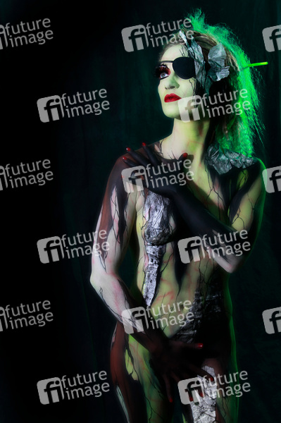 Bodypainting, Erotik, Frau, Mädchen, nackt, drinnen, weiblich, Körperkunst, Kunst, Malerei, Augenklappe, erotic, woman, girl, nude, indoor, female, body art, body painting, eyepatch