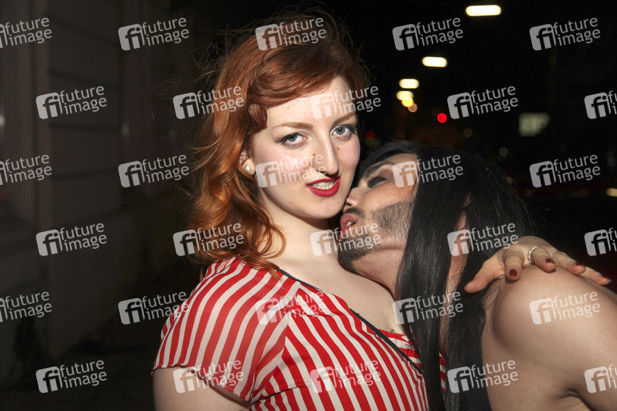 Mitzi May und Conchita Wurst in der Pause der Burlesque Show 'Kitty Revue' in der Arena Bar. Wien, 11.06.2011