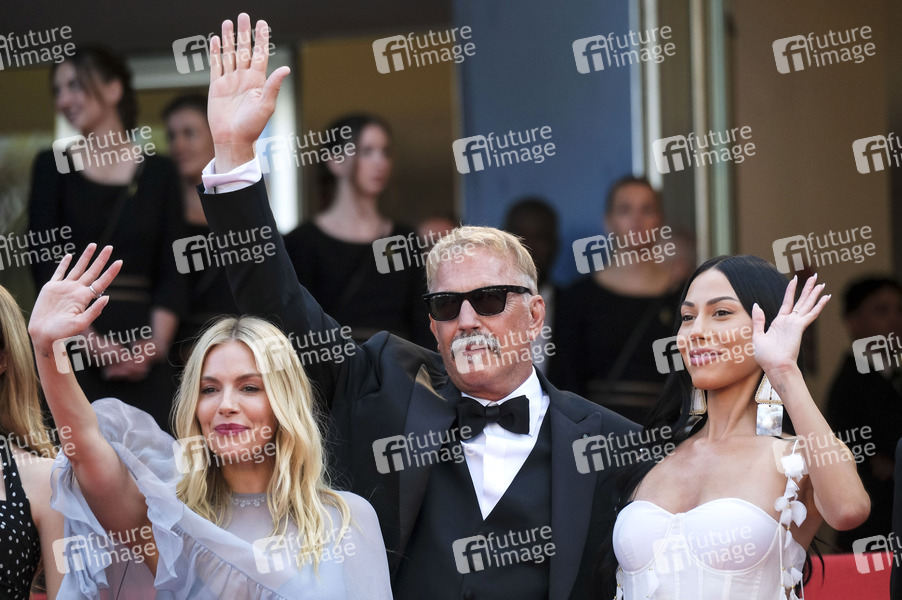 Sienna Miller, Kevin Costner und Wase Chief bei der Premiere des Kinofilms 'Horizon: An American Saga' auf dem Festival de Cannes 2024 / 77. Internationale Filmfestspiele von Cannes im Palais des Festivals. Cannes, 19.05.2024
