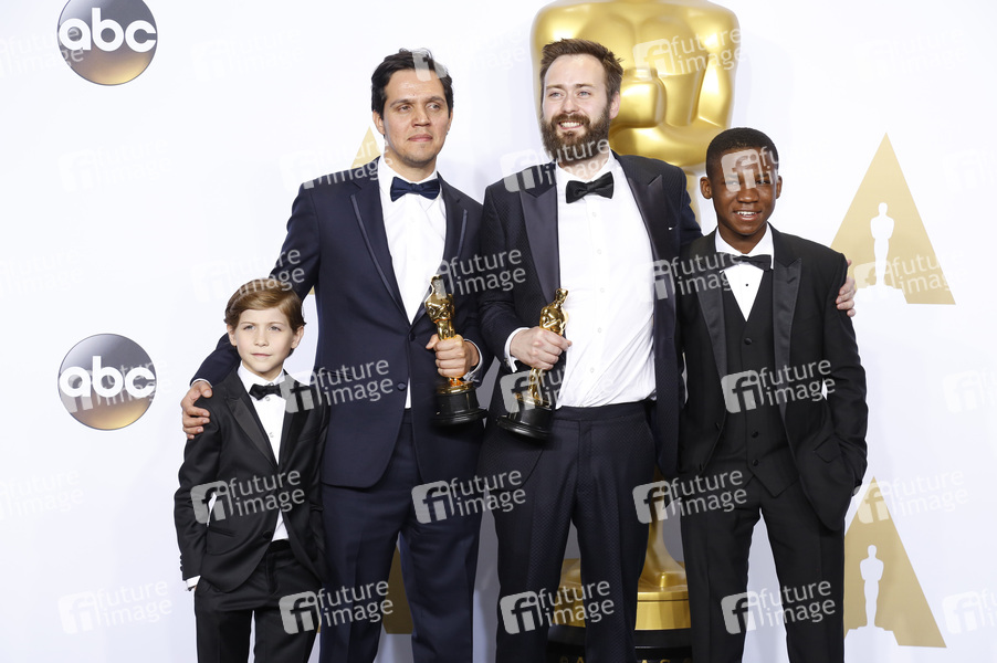 Jacob Tremblay mit Shan Christopher Ogilvie und Benjamin Cleary (Bester Kurzfilm 'Stutterer') und Abraham Attah mit im Presseraum der Oscar Verleihung 2016 / 88th Academy Awards im Loews Hollywood Hotel. Los Angeles, 28.02.2016