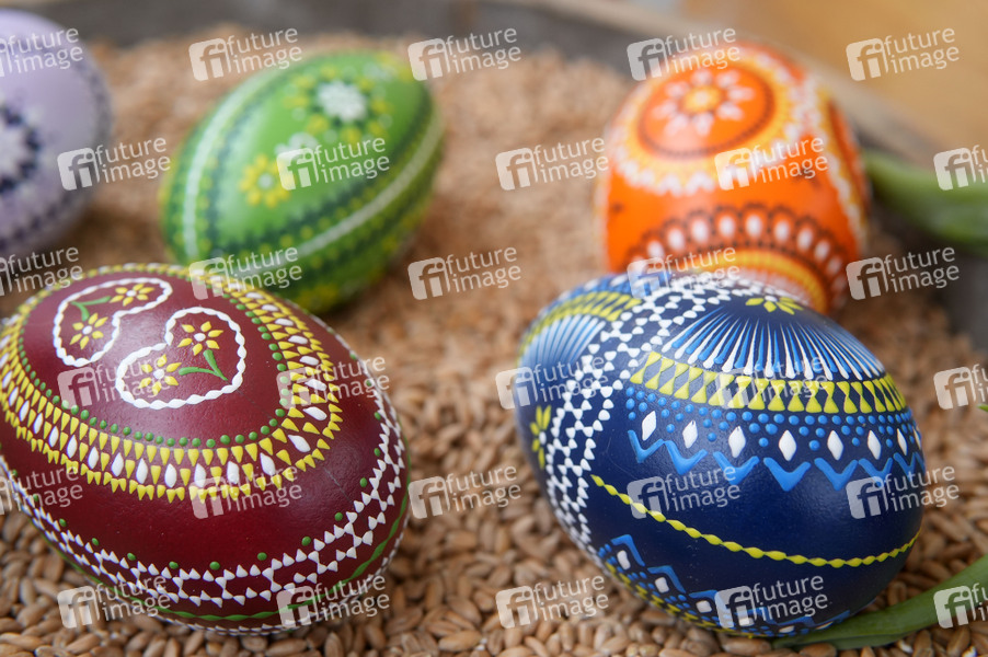 Sorbische Ostereier von Kugelei.com. Das Gelbe vom Ei - kunsthandwerklicher Ostermarkt auf dem Karl-August-Platz in Charlottenburg (Symbolfoto, Themenfoto). Berlin, 24.03.2024