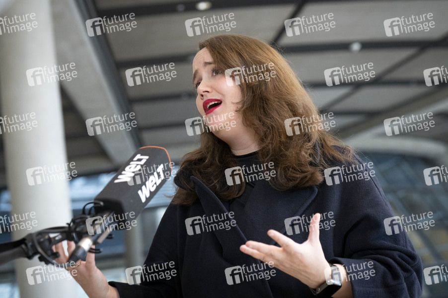 Ricarda Lang beim Pressestatement nach der Fraktionssitzung der Bündnis 90/Die Grünen-Bundestagsfraktion im Reichstagsgebäude. Berlin, 26.02.2025