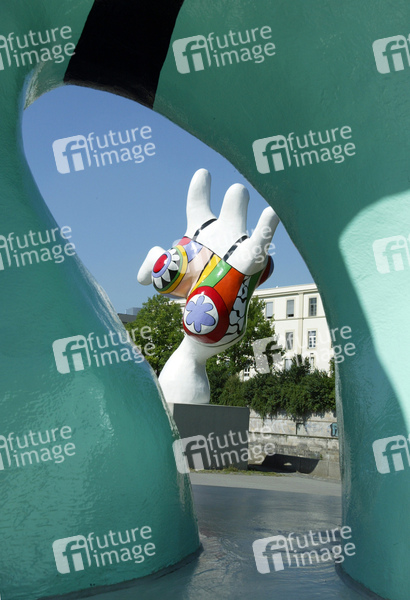 Kunstwerk von Niki de Saint Phalle von 1974, Frauenfiguren mit überdimensionierten Geschlechtsteilen