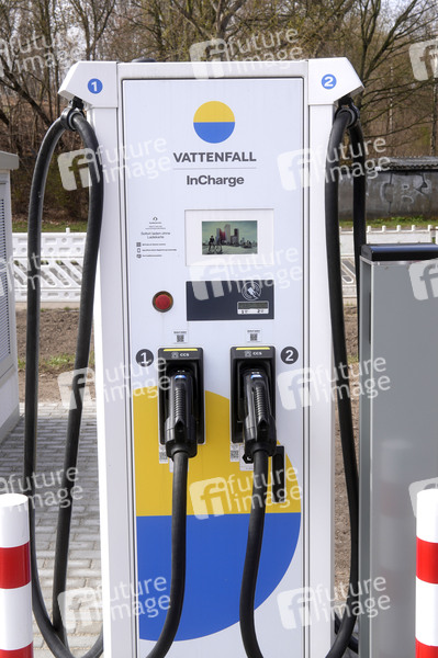 Vattenfall Ladestation auf dem Netto Parkplatz Eichbuschallee Ecke Kiefholzstraße. (Symbolfoto, Themenfoto) Berlin, 29.03.2025