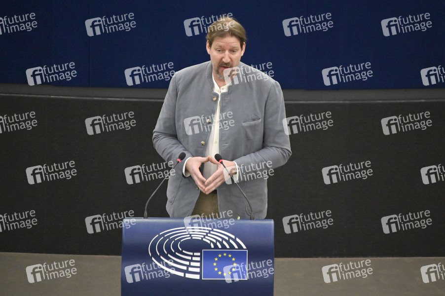 Thomas Waitz bei einer Plenartagung über den Schutz von Tieren beim Transport im Plenarsaal des Europäischen Parlaments. Straßburg, 20.01.2022