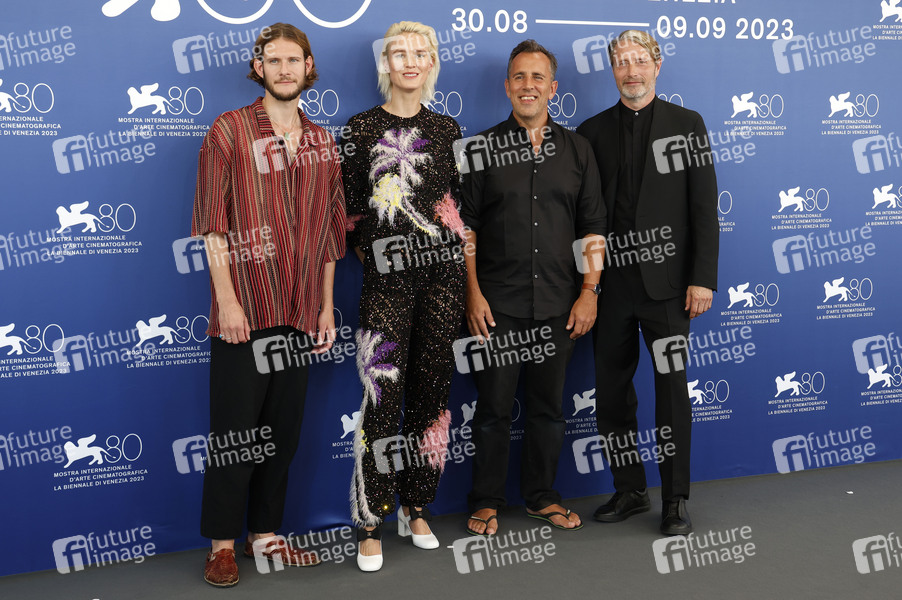 Simon Bennebjerg, Amanda Collin, Nikolaj Arcel und Mads Mikkelsen beim Photocall zum Kinofilm 'Bastarden / The Promised Land' auf der Biennale di Venezia 2023 / 80. Internationale Filmfestspiele von Venedig im Palazzo del Casino. Venedig, 01.09.2023