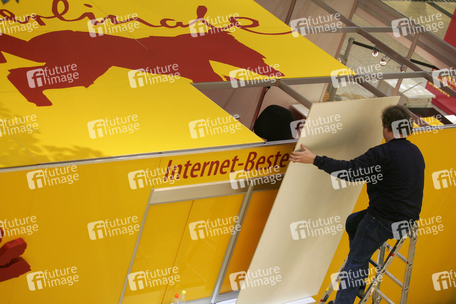 Aufbau der Ticket-Kasse der Berlinale
