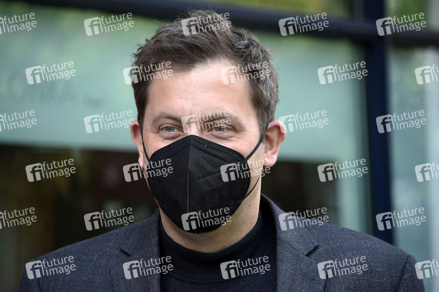Lars Klingbeil bei der Hissung der Regenbogenflagge anlässlich des Internationalen Tages gegen Homo-, Bi-, Inter- und Transphobie am Willy-Brandt-Haus. Berlin, 17.05.2021