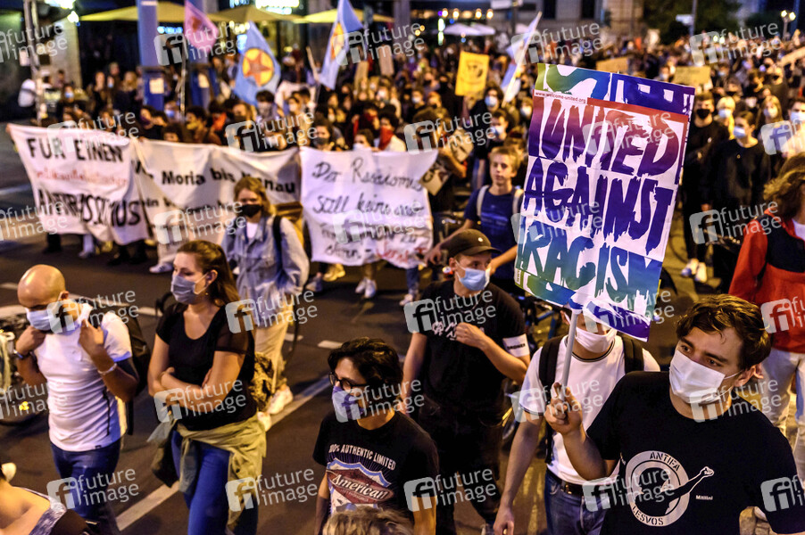 Tausende Demonstranten fordern die sofortige Aufnahme von Flüchtlingen aus dem von einem Grossbrand zerstörten griechischen Flüchtlingslager Moria (Lesbos) bei einer Demonstration unter dem Motto 'Evakuiert die Lager, denn #WirHabenPlatz' vom Bündnis 'Seebrücke' am Hauptbahnhof. Berlin, 09.09.2020