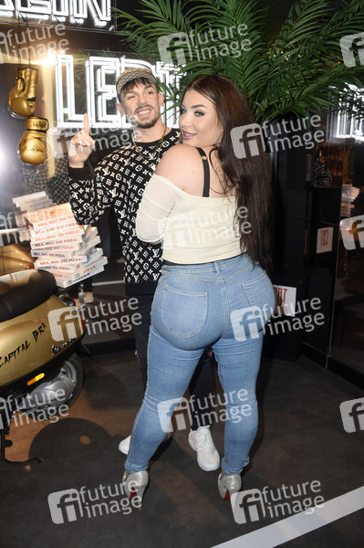 Melody Haase mit Capital Bra Wachsfigur bei der Eröffnung der Ausstellung 'Berlin 100' im Madame Tussauds. Berlin, 15.07.2021