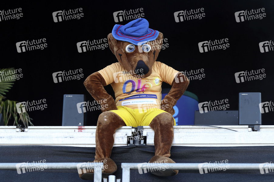 Maskottchen Olé Party beim Strandkorb Open Air 2021 - Mönchengladbach Olé im Sparkassen Park. Mönchengladbach, 14.08.2021